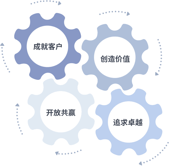 成就客户是一切决策的出发点,,,,创造价值是衡量所有工作的标准,,,追求卓越是AG旗舰厅做事做人的态度,,,,开放共赢是AG旗舰厅的格局也是最终的结果。。。。价值观的齿轮环环相扣,,推动着组织里的每个人不断向前。。